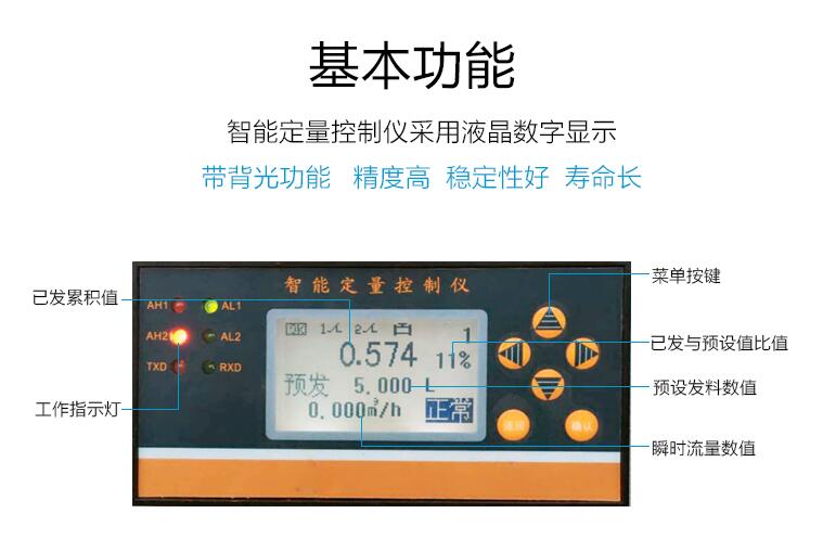 以上特點是其他定量控制儀無法同時實現的,定量控制儀絕對配置,而且可以根據用戶要求更改內部程序,使操作更符合現場要求。