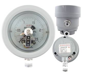 儀表由隔爆外殼、測(cè)量系統(tǒng)、電接點(diǎn)組、調(diào)節(jié)裝置和出線盒等組成。